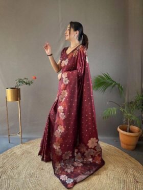 Party Wear Designer Unstitch Saree With Blouse-Colour-Bronze