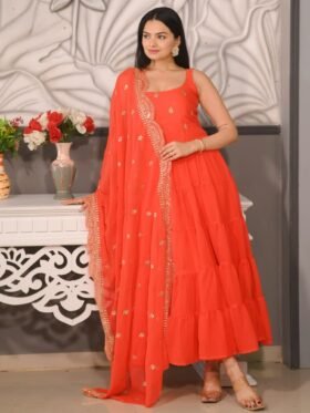 Step Back in Time with Our Vintage Polka Dots Print Georgette Long Frock – The Perfect Blend of Retro Charm and Modern Elegance