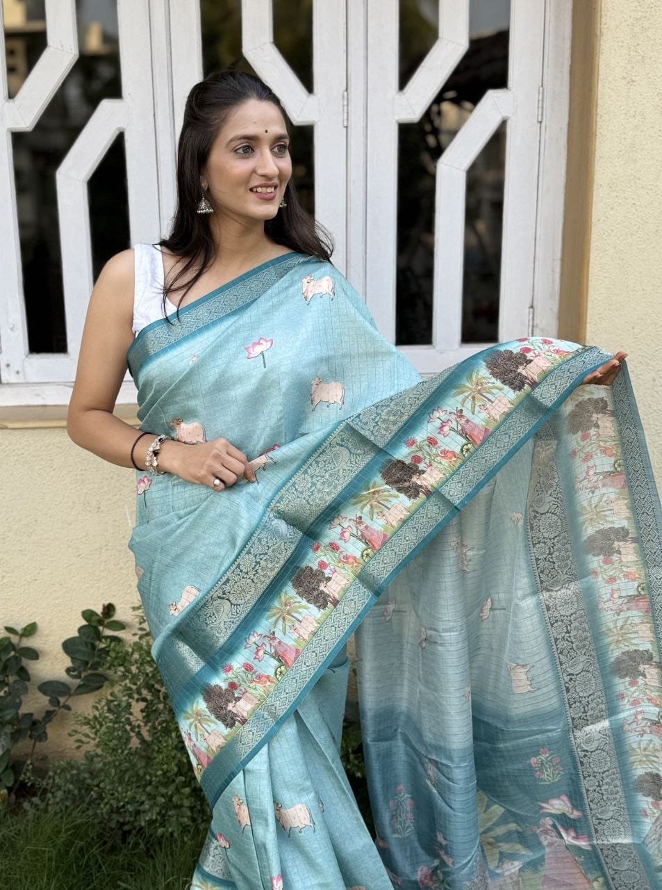 Soft smooth original jari chex all over saree