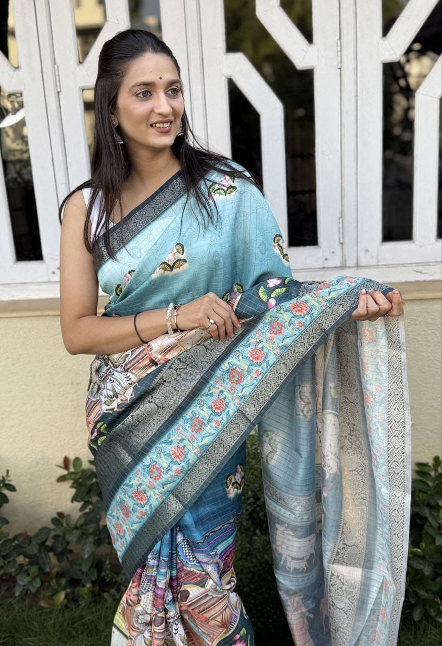 Save 29%SAREE-CANDY SILK JARI CHEX MATERIAL FANCY FLOWER COMBINATION SAREE -COLOUR-GREEN