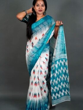 Saree- DESIGNER Printed Lilen Cotton Fabric SAREES