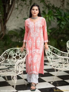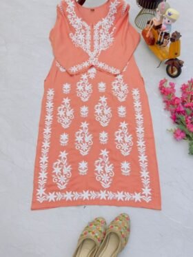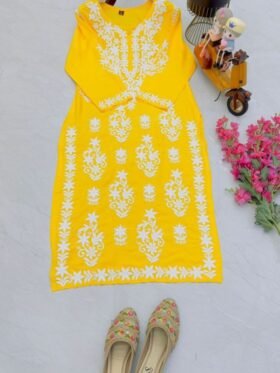 Kurti-Rayon Fabrics and Embroidery Work All over Kurti And V Round Neck Kurti