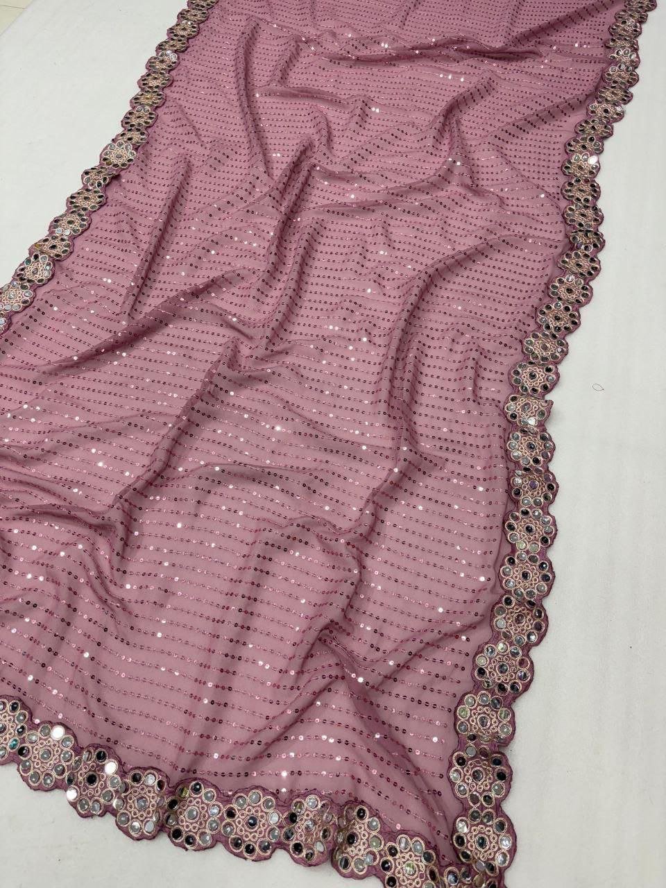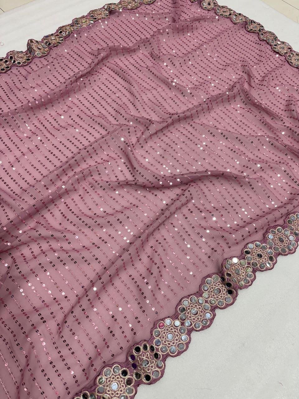 Faux Georgette Fabric with 5mm Sequence Work and Coding Lace Border in Saree with Original Mirror