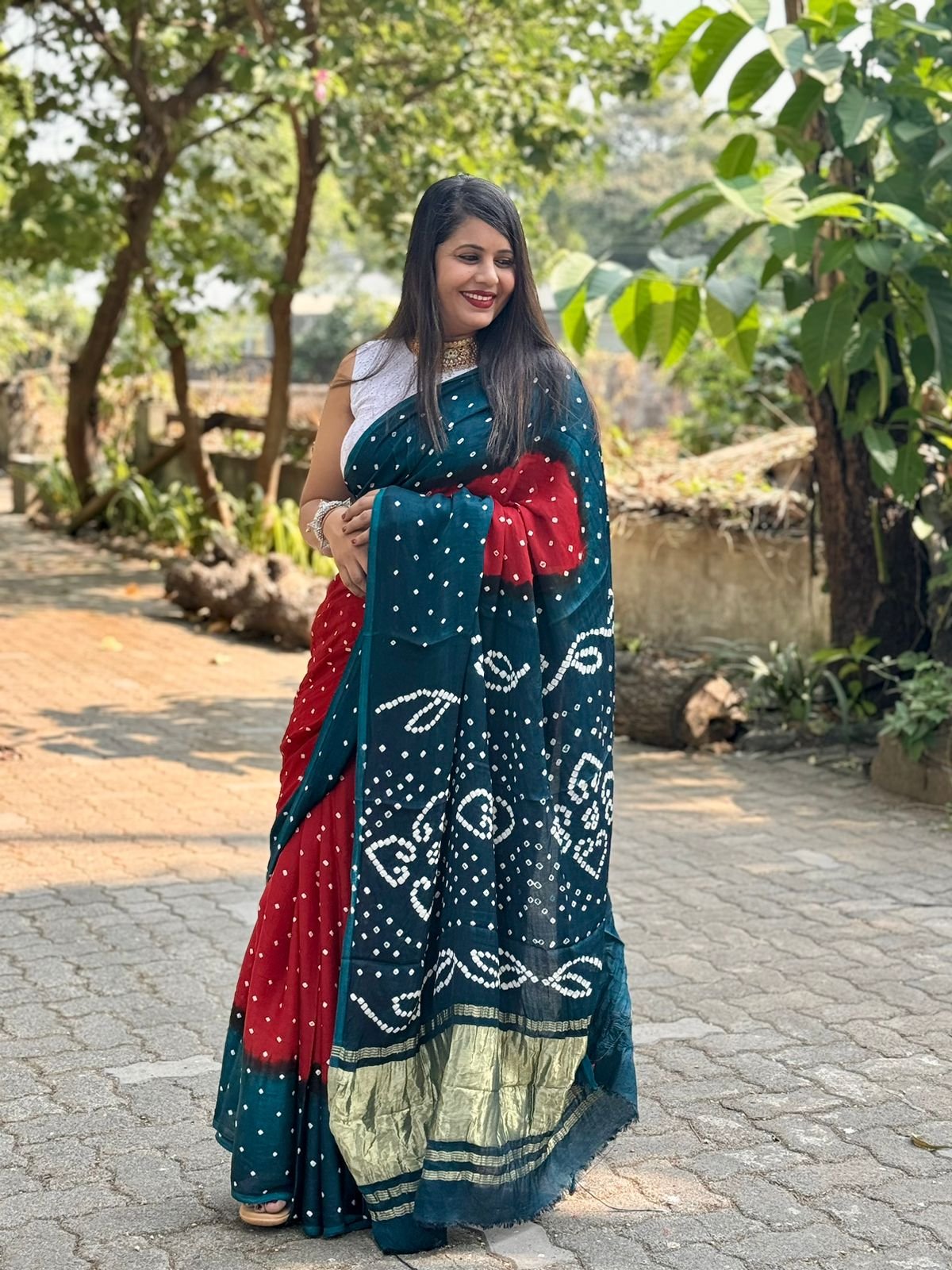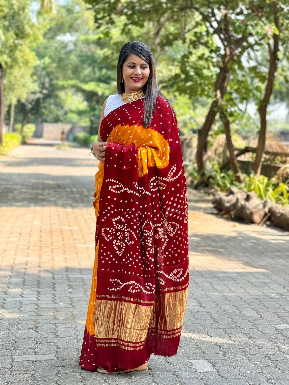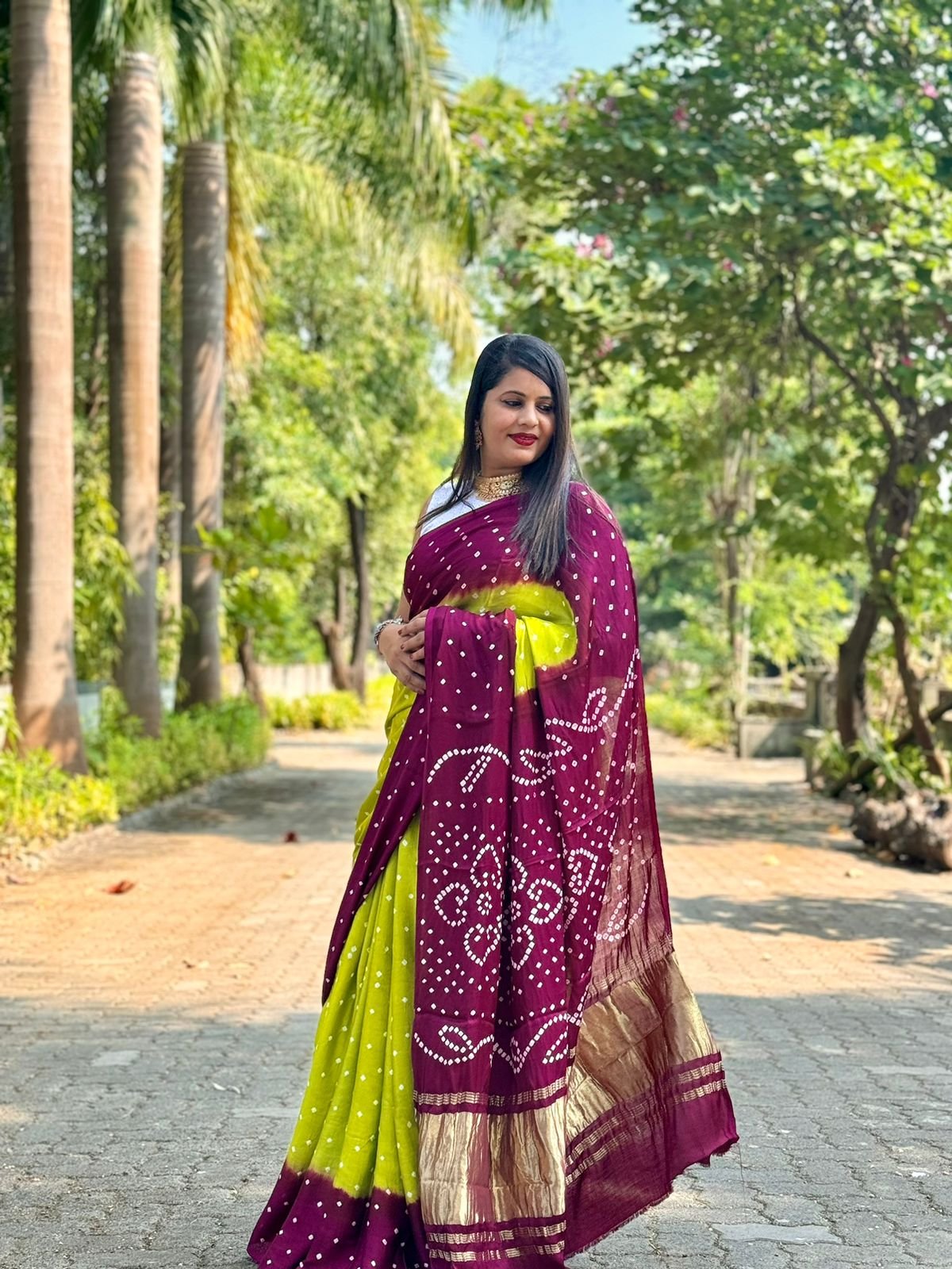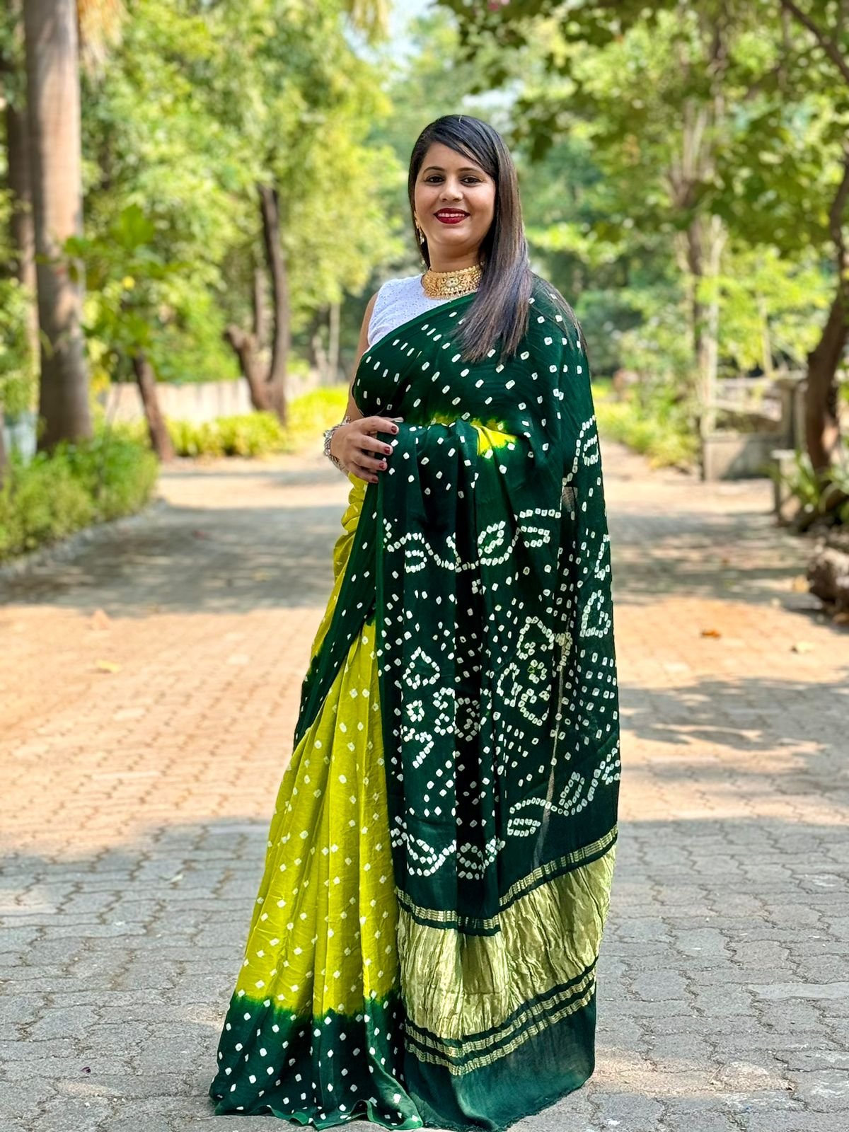 Saree-Gaji Silk Pallu Lagadi Patta Saree