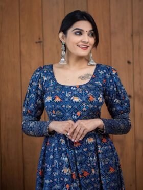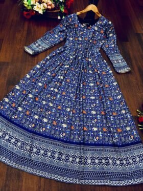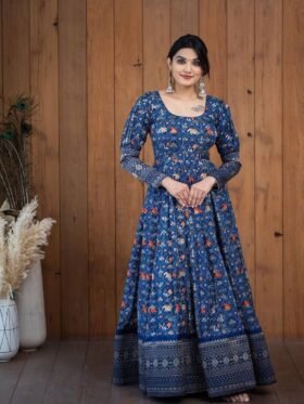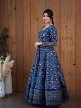 SAREE-GEORGETTE FABRIC WITH ALL OVER KALMAKARI FLOWER DESIGN -COLOUR-SKY BLUE FLORAL PRINT
