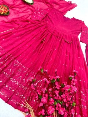 *👗Fabric Soft Georgette With Multi Thread Sequence With Pallu Attach Gown*