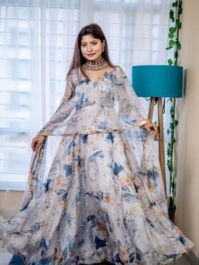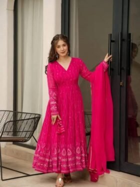 One More Super Hit Georgette Embroidery Gown Saree Design Launch*