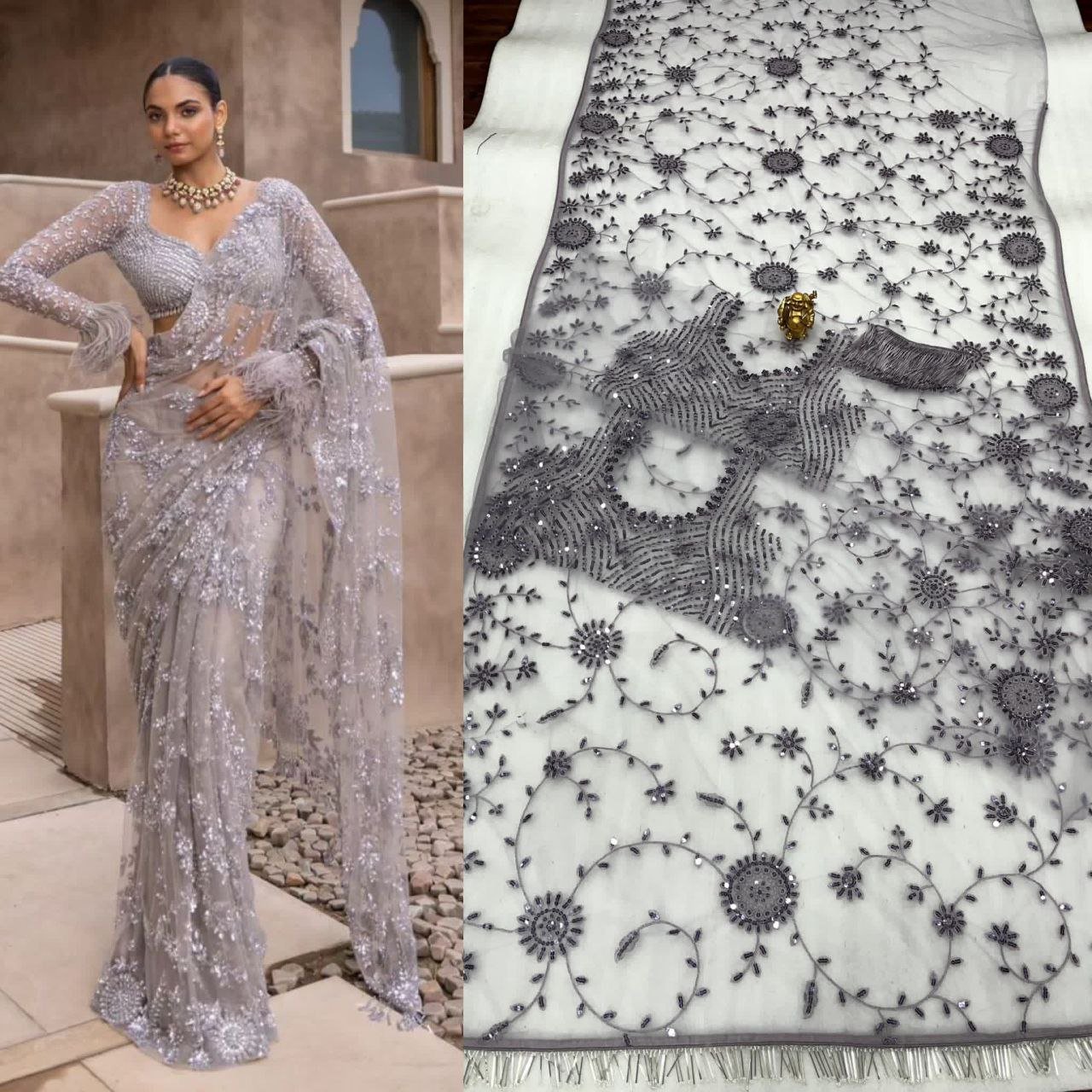 Mono Net fabric Heavy 5MM multi & Sequins Embroidery work Saree