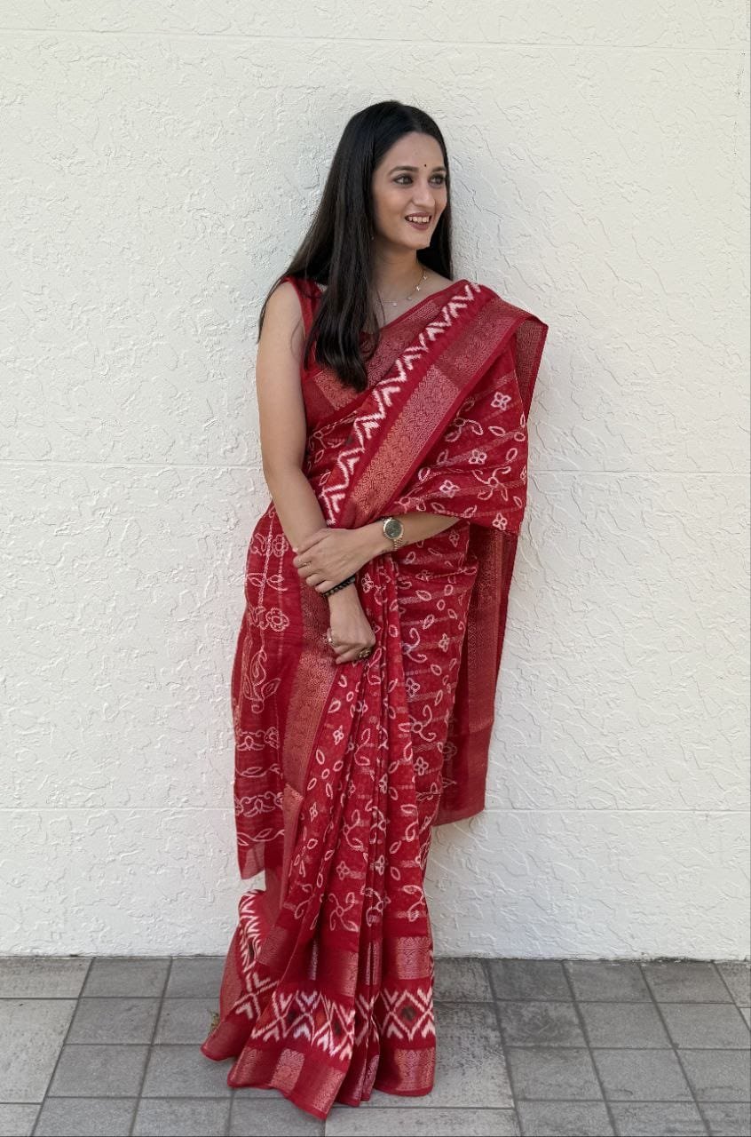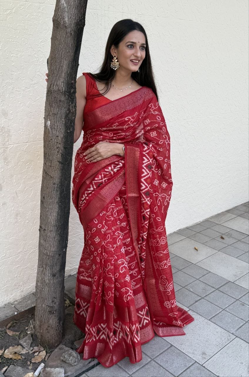 Saree- Pure Candy Cotton silk with Jaquard Border Bandhej Saree-Colour-Red