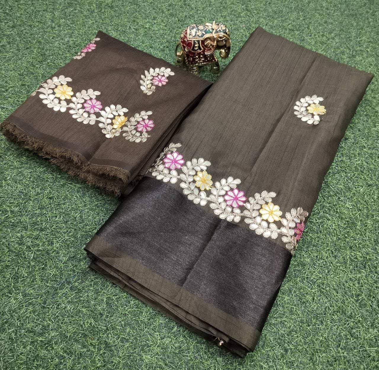 SAREE-PURE DOLA SILK WITH BEAUTIFUL GOTA WORK SAREE-COLOUR-BROWN