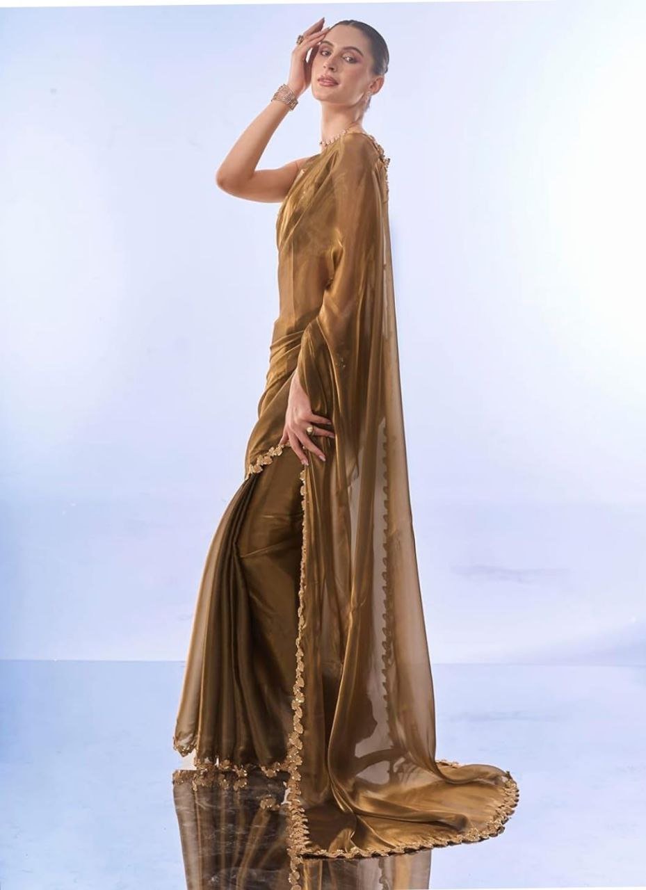 Saree-Saree-Party Wear Designer Unstitch Saree With Blouse-Colour-Bronze