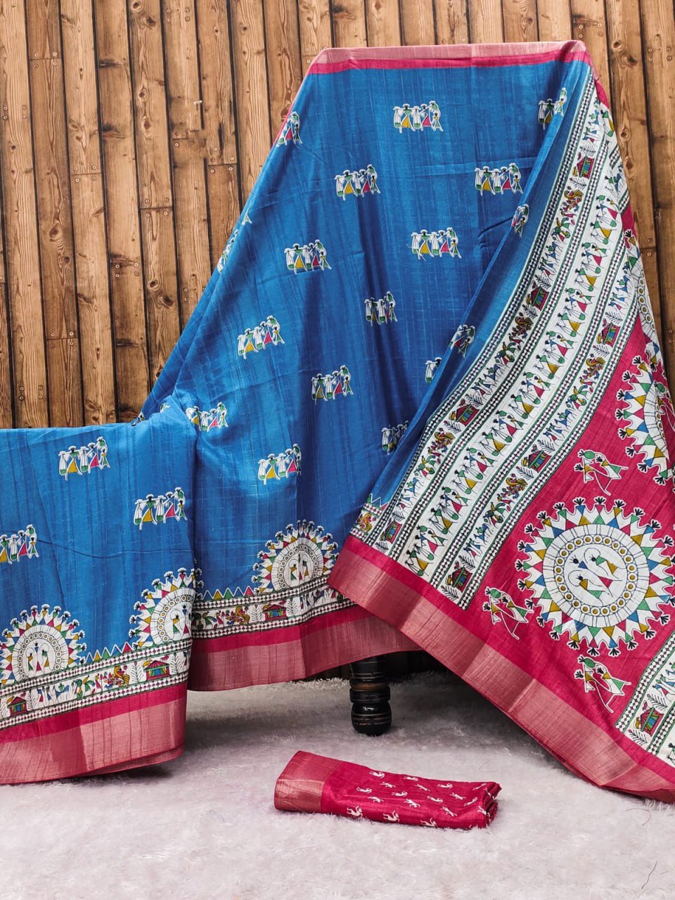 Saree- Silver borders along with pallu and blouse Colour-Blue And Red