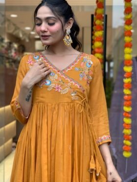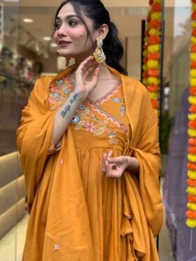 Kurti Pant And Dupatta-Viscose Chanderi Fabrics And Embroidery Work Kurti