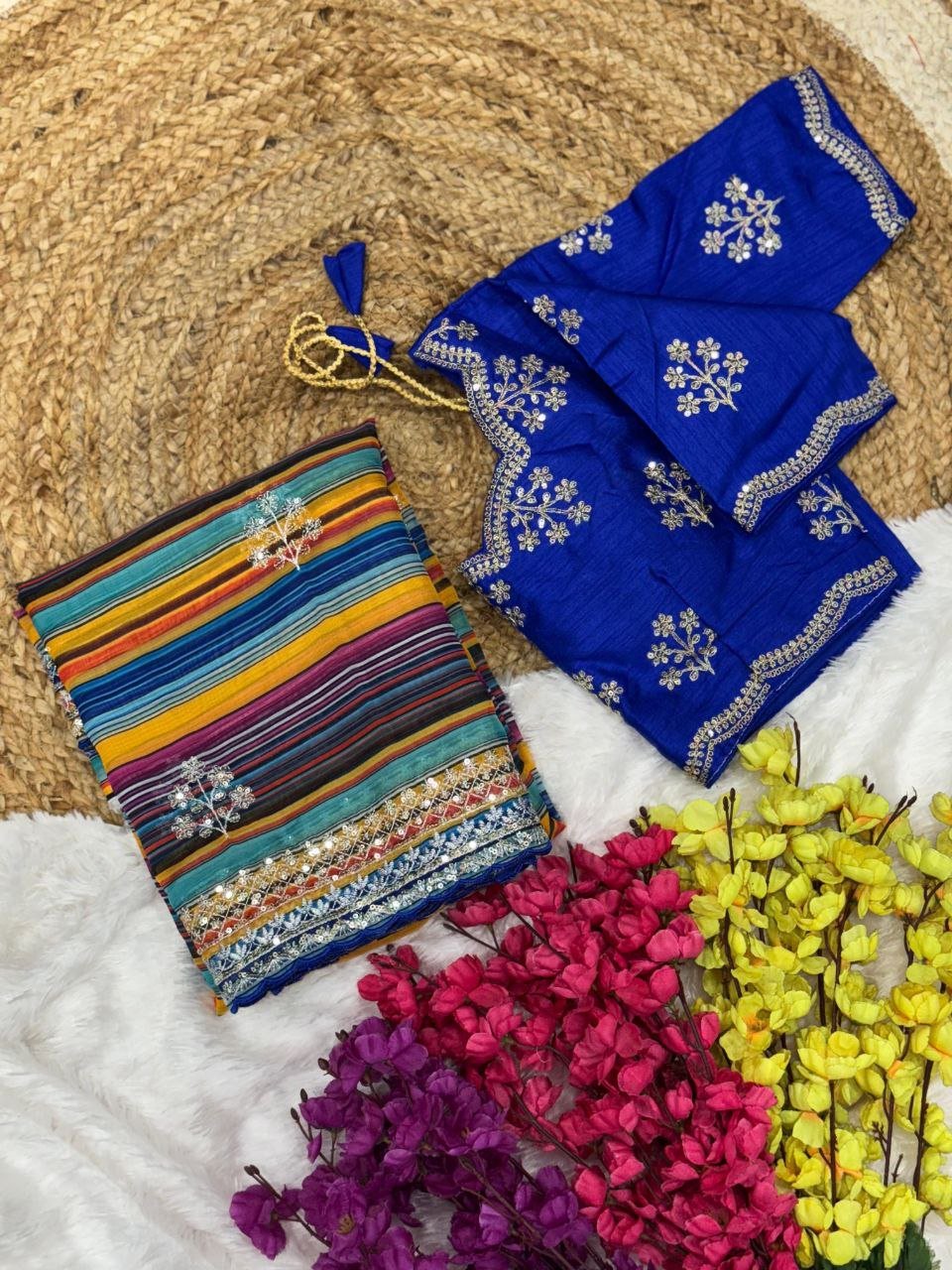Blouse:- Tabby Silk Fabric with Embroidery Work.