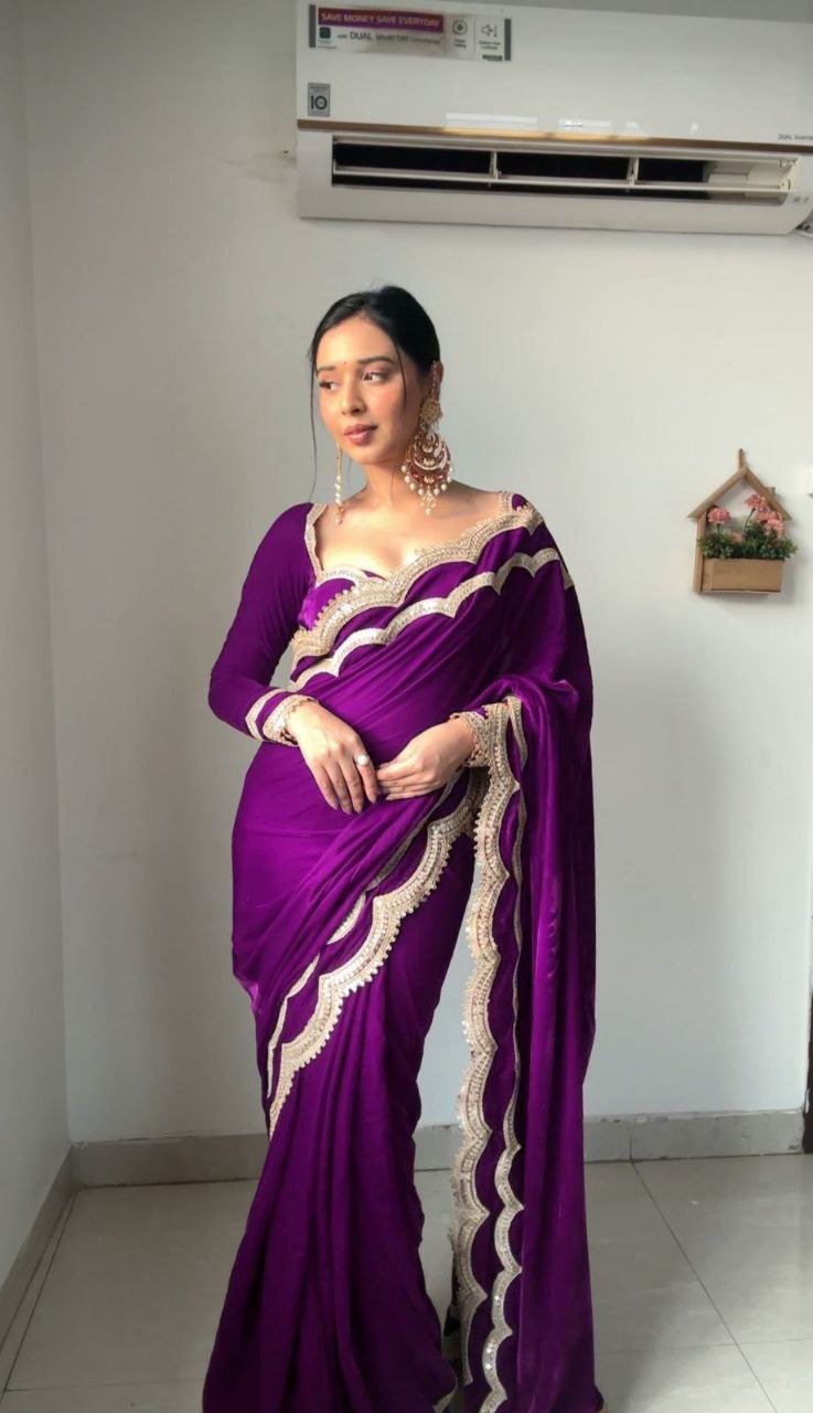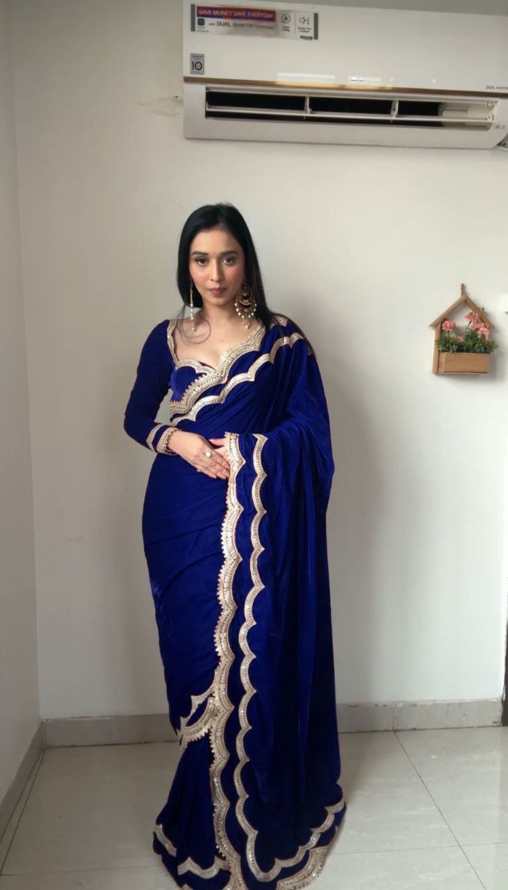 Velvet Fabric With Heavy Work Double Lace Border Work.