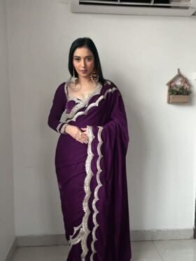 Ready To Wear Saree- Heavy Velvet Fabrics And Heavy Double Lace Border Work Ready To Wear Saree
