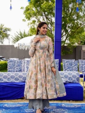 Soft Georgette Black Mirror Anarkali Shape
