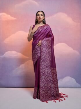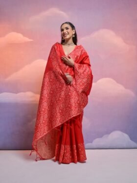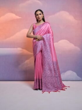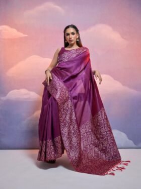 SAREE- Soft Banglori Handloom raw silk saree with warli type weving pallu and contrast weaving border Saree