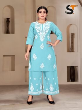 Kurti And Plazzo-Heavy Rayon Fabrics And Embroidery Work Kurti And Plazzo
