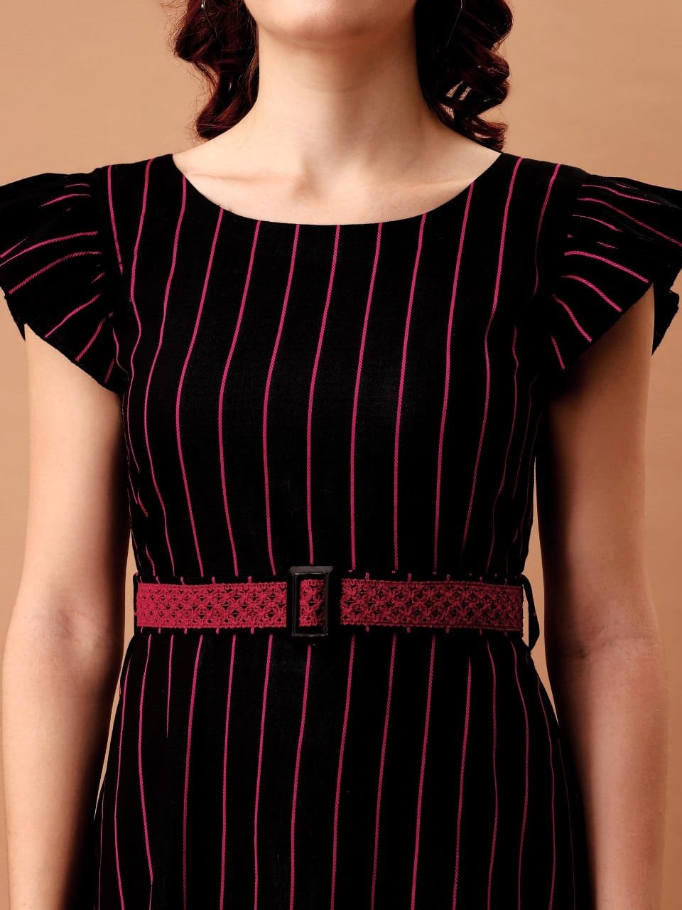 Striped Western Dress With Embroidered Belt