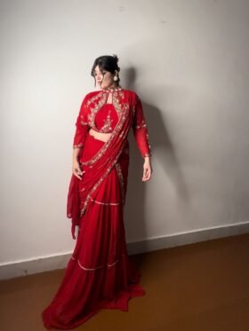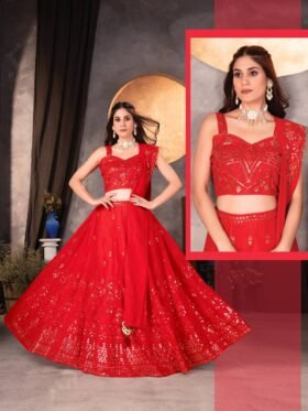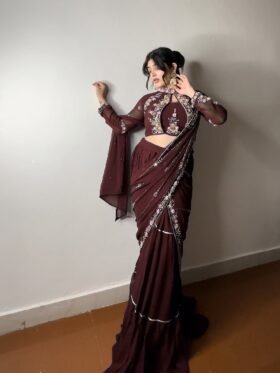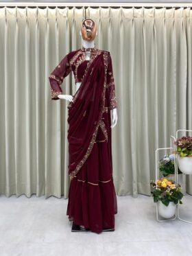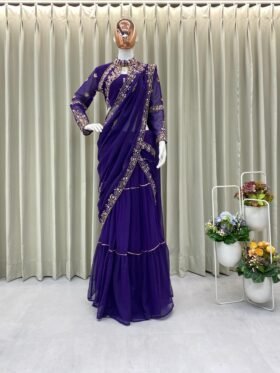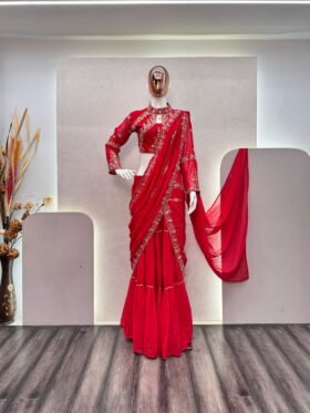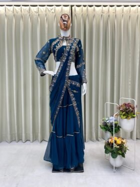 Lehenga Saree- FAUX GEORGETTE WITH RUFFLE AND EMBROIDERY WORK WITH MIROR WORK
