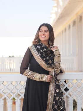 Gown with Dupatta With Attractive Embroidered Sequins work with Lace Border. 👗 SIZE :- M(38”), L(40”), XL(42”), XXL(44”) Colour-Black