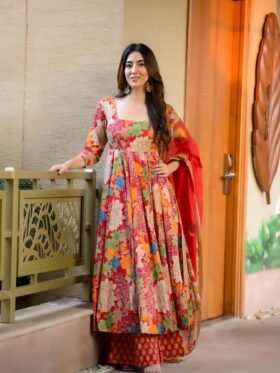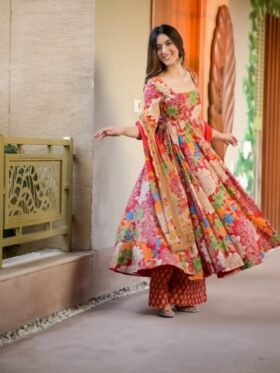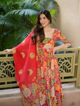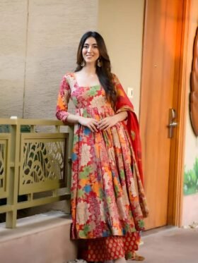 Kurti Pant And Dupatta Set – Viscose Fabrics And Embroidery Work Kurti With Gajii silk Printed Dupatta