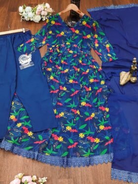 Soft Georgette Kurti Blue Colour SIZE :- S,M,L,XL,2XL,3Xl Duptta :- Soft Net Work:- Embroidery Fancy Work