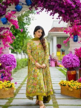 GOWN-PURE SIMAR VISCOS JACQUARD SILK (FRONT AND BACK EMBROIDERED WITH BANDHANI DUPATTA