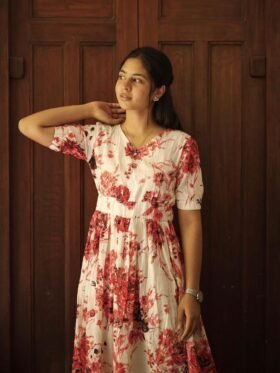 Gown- Printed Top With Foil Work And Gorgette Fabric Gown